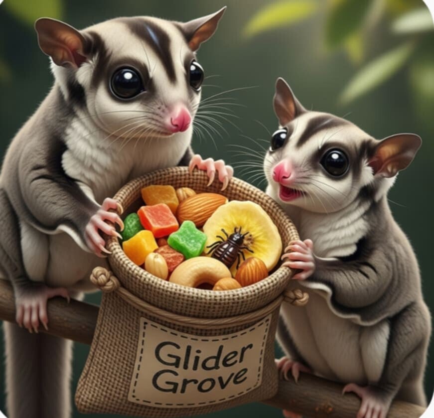 Specially formulated mixtures for sugar gliders have been developed and are available in exotic pet stores or on the internet. However, most of these are meant to be fed as part of a varied diet and should not be relied on as the only food source. Artificial nectars that mimic the sap and nectar that sugar gliders eat in the wild should account for about half of the diet. The other half of the diet can be a mix of commercial pellet diets made for sugar gliders, live insects treated with extra calcium, and small amounts of fruits, and vegetables.